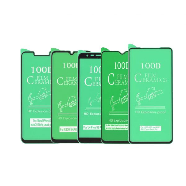 محافظ صفحه نمایش از اجزاء جدا نشدنی در خرید لوازم جانبی گوشی محسوب میشود. محافظ صفحه نمایش سرامیکی همانطور که از نامش نیز مشخص است از جنس سرامیک است. فیلم سرامیک نشکن نوعی محافظ صفحه نمایش نرم است. این محافظ صفحه نمایش از مواد مخصوص (TPU+PC) ساخته شدهاست. گلس سرامیکی انعطافپذیری بسیار بالایی دارد. یعنی خیلی راحت میتوانید آن را خم کنید. این انعطافپذیری و قابلیت ارتجاعی باعث شده است تا قابلیت ضدضربه داشته باشد. حتی اگر گوشی از دستتان بیفتد هم احتمال آسیب دیدن صفحه گوشی خیلی کمتر است.در مقایسه با گلس حرارتی یکی از بارزترین ویژگیهای گلس سرامیکی این است که به سختی میشکند! سختی بالای این محصولات باعث شده که خاصیت ضد خش داشته باشند و همین به محبوبیت آنها در بازار افزوده است. مهمترین مزیت گلس سرامیکی نسبت به سایر گلسها لبپر نشدن آن است. میدانید که گلسهای شیشهای دچار لبپریدگی میشوند و لبهها خراب میشوند. اما محافظ صفحه سرامیکی به هیچ وجه چنین مشکلی ندارد. استفاده از این نوع گلس اجازه می دهد تا هر آنچه بر روی صفحه گوشی نمایش داده می شود را به شکل کاملاً شفاف و واضح مشاهده کنید. به عنوان مثال افرادی که قصد دارند فیلم های با کیفیتی بر روی گوشی خود ببینند، می توانند از این نوع گلس استفاده کنند. گلسهای سرامیکی معمولاً به صورت فول کاور هستند که اجازه می دهد تمامی سطح گوشی را بپوشانید و از آسیب دیدن آن جلوگیری کنید. همچنین انعطاف پذیری بالای این محصولات باعث می شود که خود شما بدون هیچ مشکلی با ابتدایی ترین وسایل بتوانید گلس را روی گوشی یا تبلت خود نصب کنید. این گلس ضدچربی است و اثر انگشت شما هم تا حدود زیادی روی آن باقی نمیماند و با خیال راحت میتوانید از آن استفاده کنید.