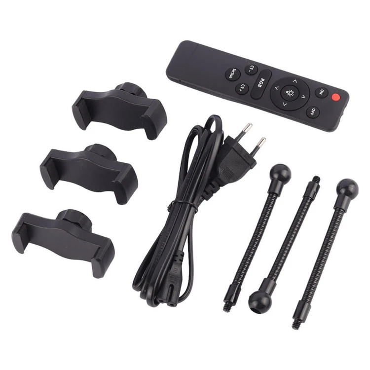 اقلام همراه: 3 عدد هولدر موبایل، کابل برق و ریموت کنترل